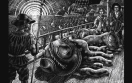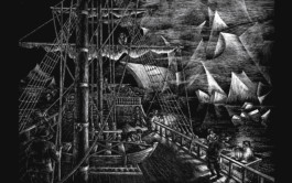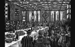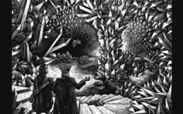 Mein Freund Hugo Ender aus Götzis, inzwischen 80 Jahre alt, hat für mich die einmaligen Illustrationen geschaffen. Die Technik, in der er diese Kunstwerke angefertigt hat, ist die sogenannte „Schabkartontechnik“. Dabei überträgt er seinen Entwurf auf einen weißen Karton, der mit einer schwarzen Wachsschicht überzogen ist, dann wird mit kleinen Messern oder Nadeln das Bild richtiggehend herausgekratzt.