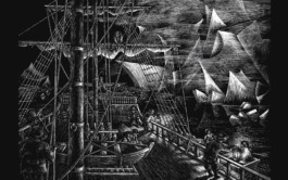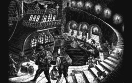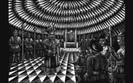 Mein Freund Hugo Ender aus Götzis, inzwischen 80 Jahre alt, hat für mich die einmaligen Illustrationen geschaffen. Die Technik, in der er diese Kunstwerke angefertigt hat, ist die sogenannte „Schabkartontechnik“. Dabei überträgt er seinen Entwurf auf einen weißen Karton, der mit einer schwarzen Wachsschicht überzogen ist, dann wird mit kleinen Messern oder Nadeln das Bild richtiggehend herausgekratzt.